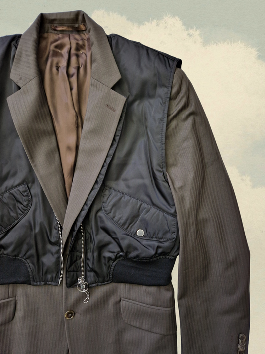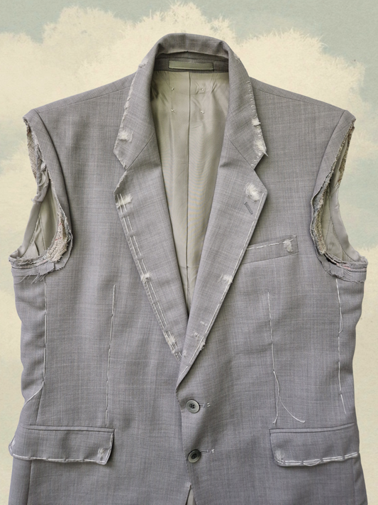 Described jacket without live cut sleeves with contrasting seams